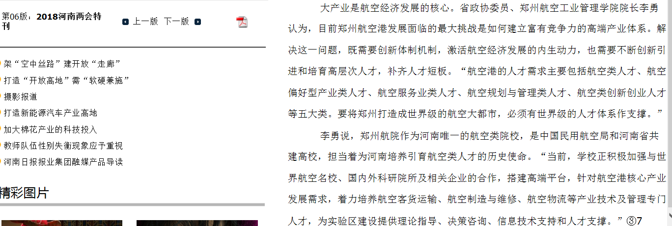 1月29日,《河南日报》(“2018河南两会特刊”)针对如何高质量推进郑州航空港建设,采访省政协委员、开云手机在线登陆院长李勇。