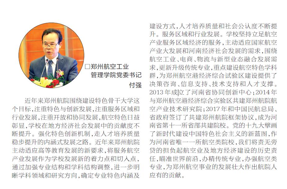 4月26日上午,由河南日报社主办的“第九届河南高等教育领军高校高峰论坛”暨“2018年度河南教育豫军总评榜”颁奖典礼在河南报业大厦举办。论坛上,我校党委书记付强及其他12所高校负责人分别做了精彩发言,从重大科学研究、国际合作、改革创新等重点领域与大家分享了各自的办学经验,以促进我省高校向高质量大学发展。