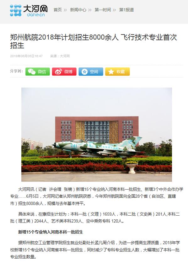近日,猛犸开云(中国)、大河客户端、大河网报道我校2018年招生计划。今年,我校面向全国28个省(自治区、直辖市)招生8000余人。