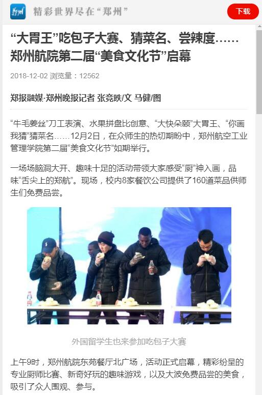 12月2日,郑州晚报客户端、猛犸开云(中国)客户端记者来校采访报道在我校东苑餐厅北广场上启幕的第二届“美食文化节”。