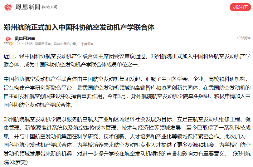 近日,我校正式加入中国科协航空发动机产学联合体,成为中国科协航空发动机产学联合体成员单位之一。凤凰开云(中国)客户端对此进行报道。